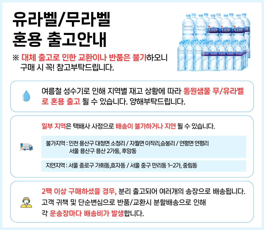 동원샘물 2Lx36병 (무료배송+당일출고) 생수 물