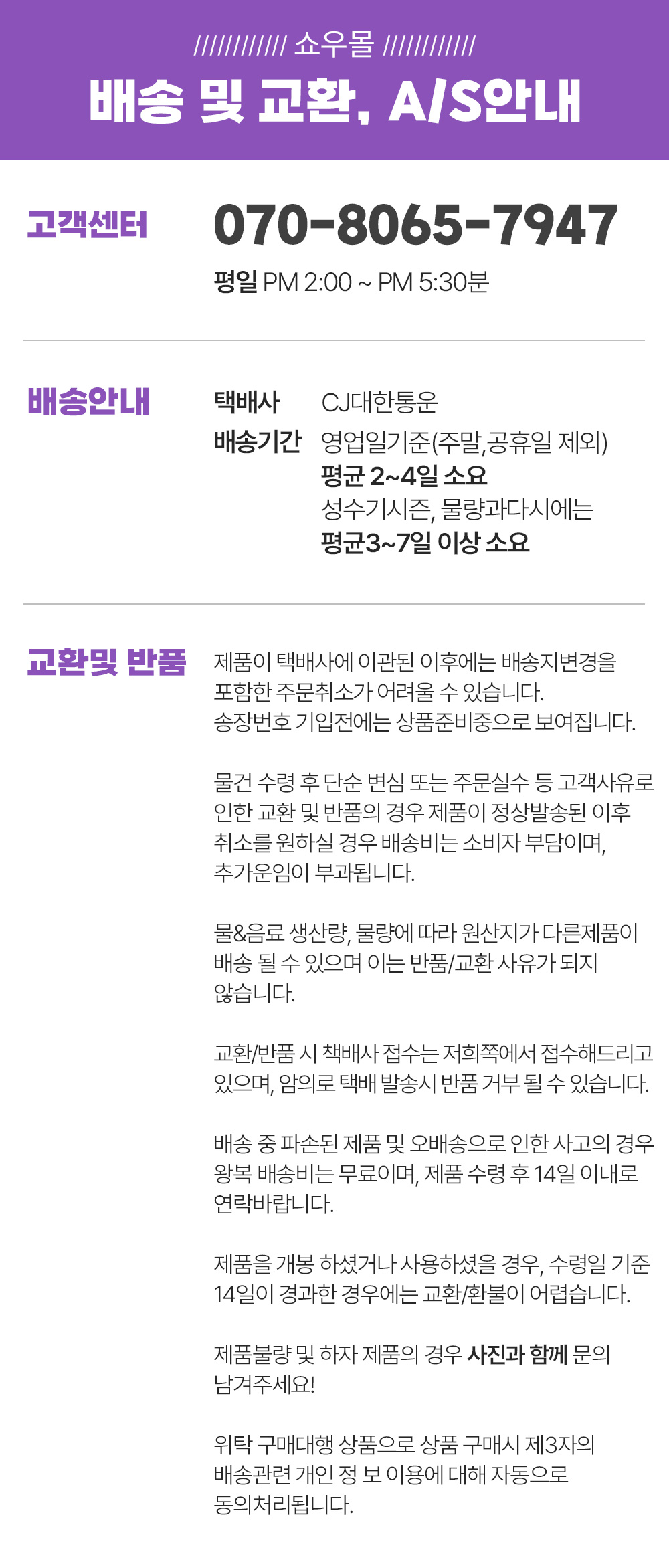 이용약관 개인정보처리방침  |  사업자정보확인 Copyrightⓒ쇼우몰 All rights reserved.