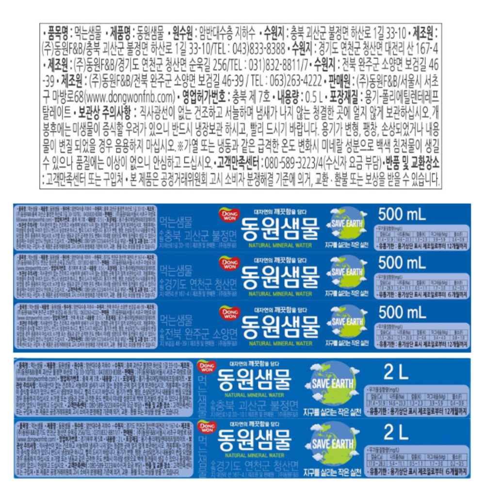 동원샘물 무라벨 2Lx6병 (무료배송+당일출고) 외4종 생수