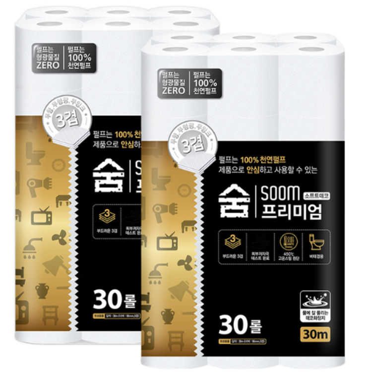[무조건 1+1 30롤X총2팩] 땡큐 숨 행운드림 3겹 30롤 (당일출고) 두루마리 화장지SALEMD