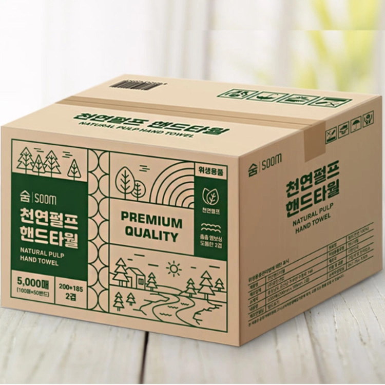 soom 숨 (천연펄프) 핸드타올 5000매 일회용 손 타올 초록티슈 화장지 휴지 (무료배송)