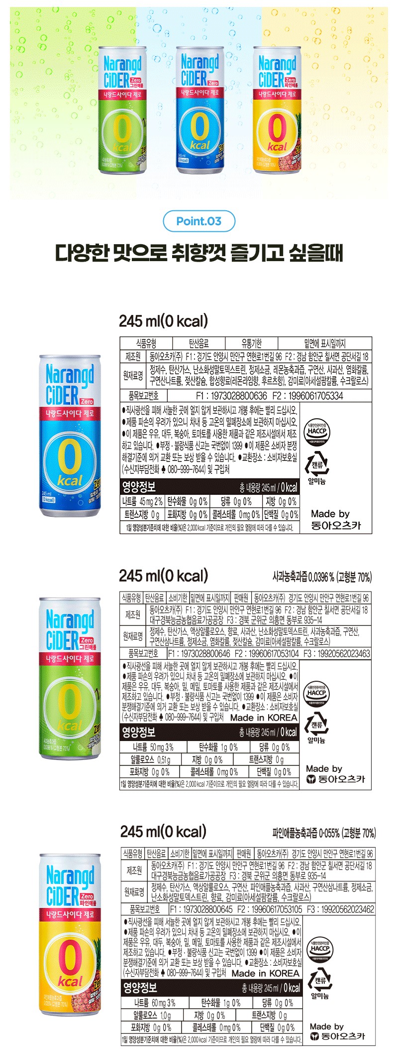 취향에 따라 맛도 다양한 나랑드 사이다!