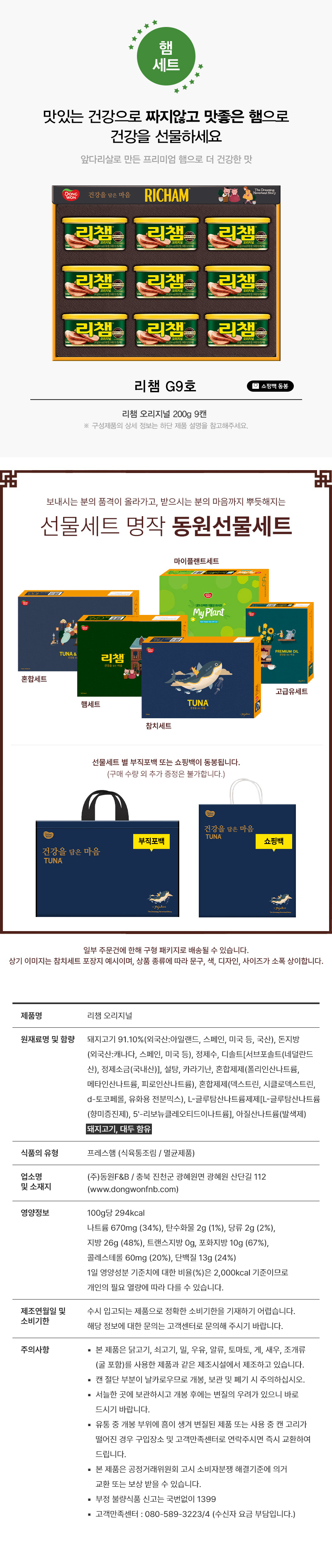 [동원] 참치선물세트 리챔 g9호 동원선물세트 명절 선물 선물세트